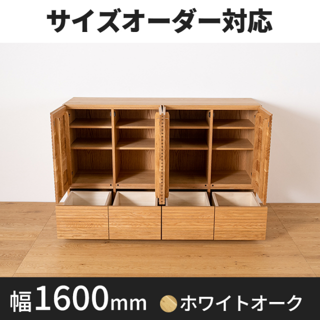 分割構造大型サイドキャビネットは2分割式(天板1枚、本体2分割)での製作となります。