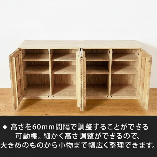 可動棚高さを60mm間隔で調整することができる可動です。