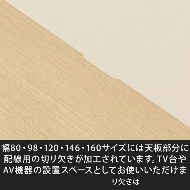 配線用切り欠き幅98・120・140・146・160サイズには天板部分に配線用の切り欠きが加工されています。