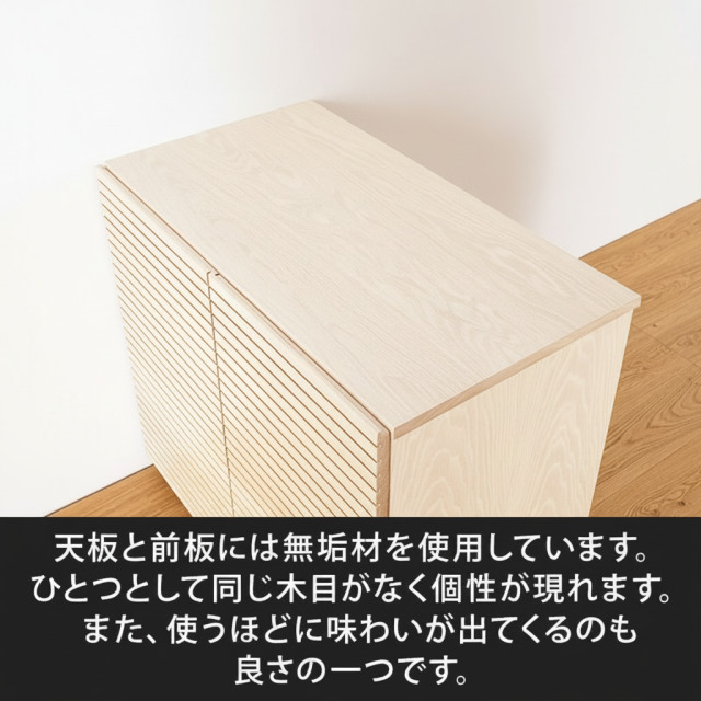 無垢材を用いた天板と前板天板と前板には無垢材を使用しています。