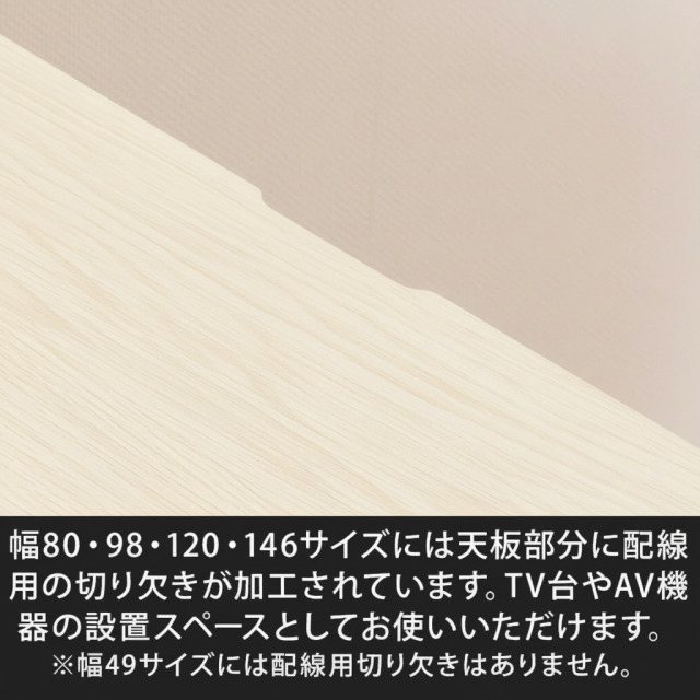 配線用切り欠き幅80・98・120・146サイズには天板部分に配線用の切り欠きが加工されています。