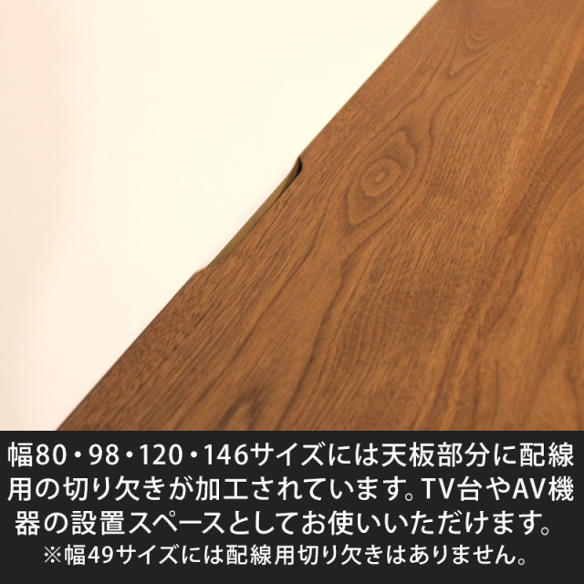 配線用切り欠き幅80・98・120・146サイズには天板部分に配線用の切り欠きが加工されています。