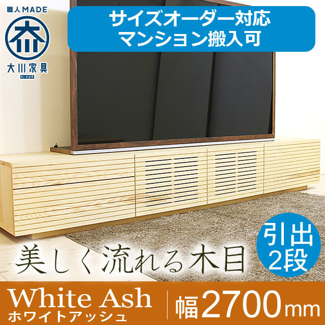 【サイズオーダー可】天然木、無垢材使用テレビボード 風雅/FUUGA タイプ2-幅2700mm(ホワイトアッシュ‐スリット)