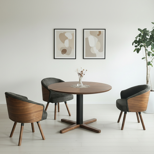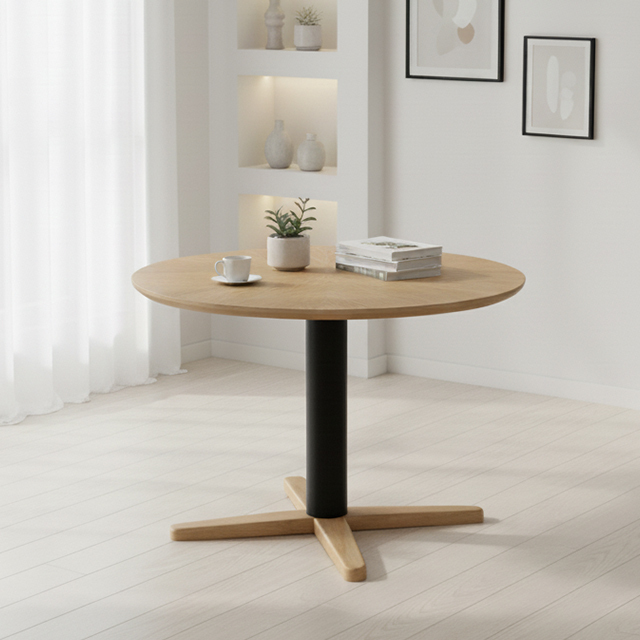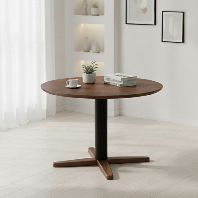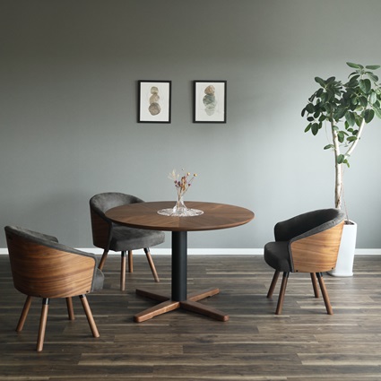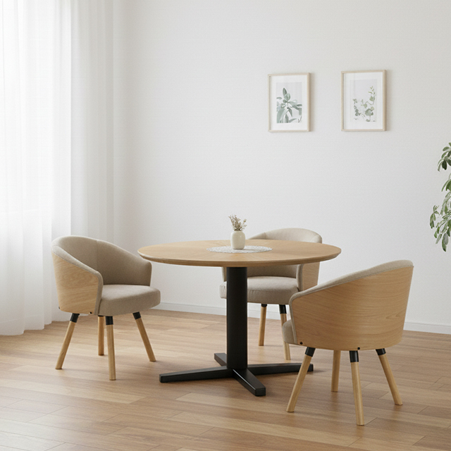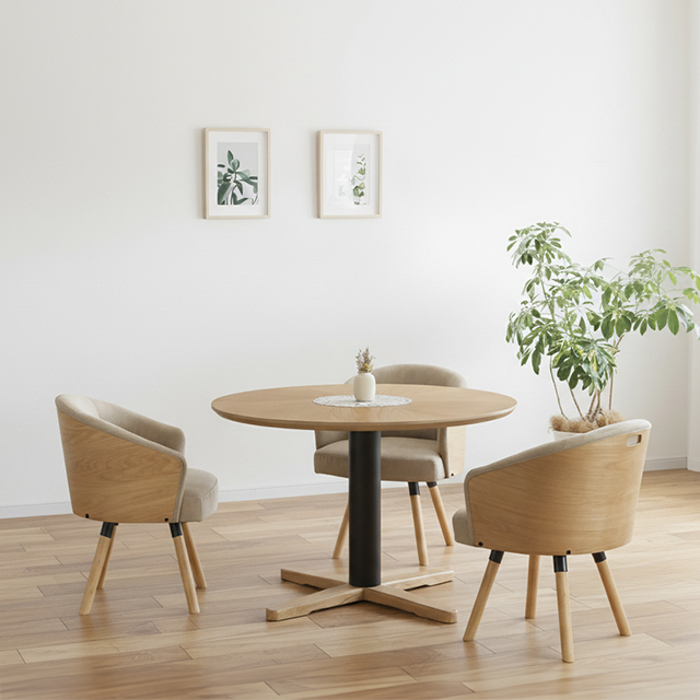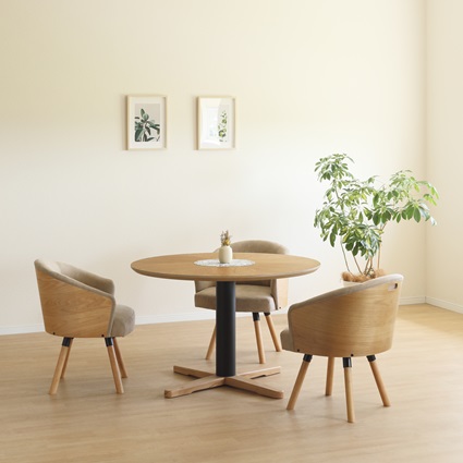 丸形のデザイン- 圧迫感がなく、お部屋が広く感じられる円形のダイニングテーブルです。丸形の形状は角がないのでお子様にも安心です。