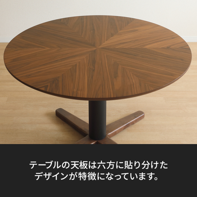 天板のデザイン- テーブルの天板は、六方に貼り分けたデザインが特徴になっています。