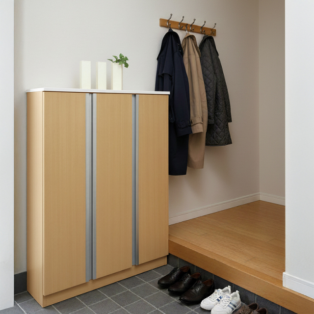 スタイリッシュなアルミハンドル- アルミハンドルがスタイリッシュなシューズボックスです。