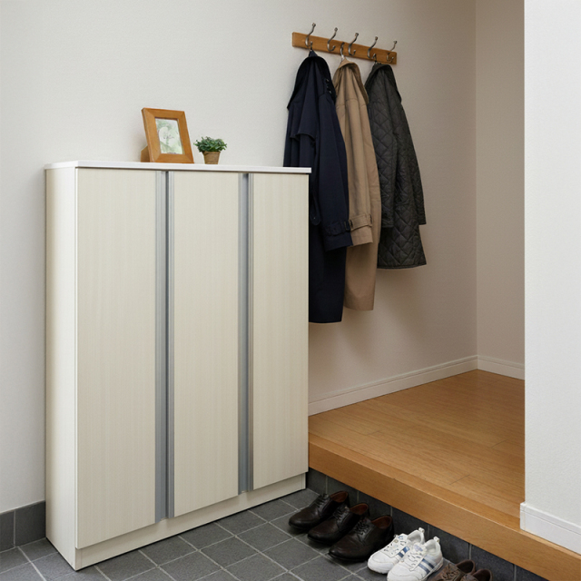 | セット内容 | シューズボックス1台 | 材質 | 【表面材】強化シート 【取手】アルミ 【天面】白エナメル塗装 |