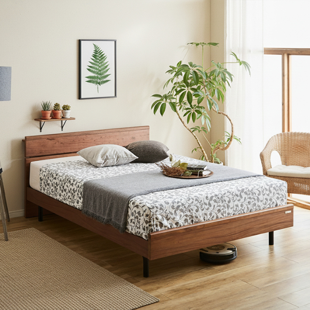 コンセント付無垢材ベッドフレーム
