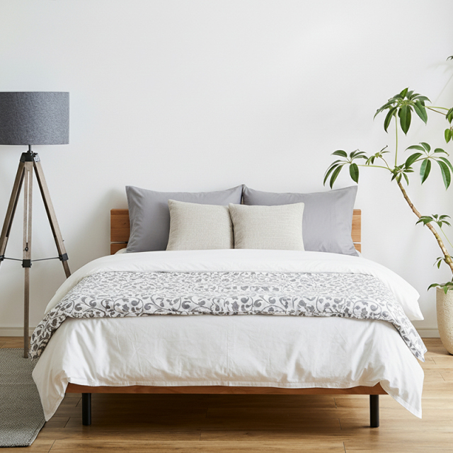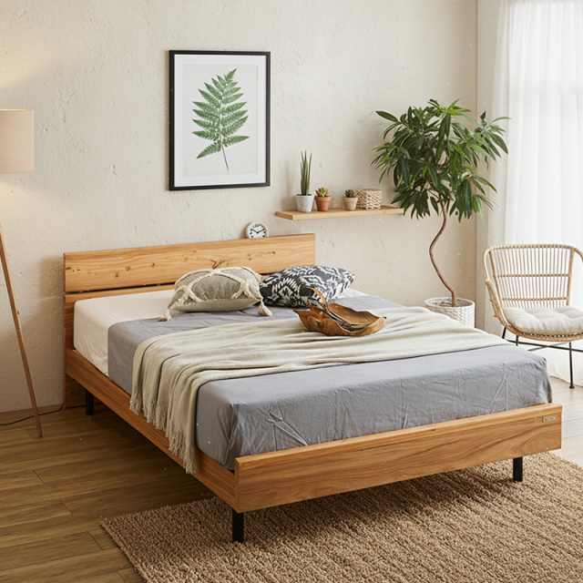 天然の無垢材を使用し素材感のある温かみを感じられるベッドフレーム。