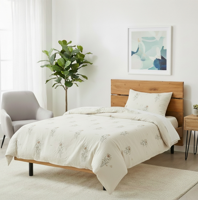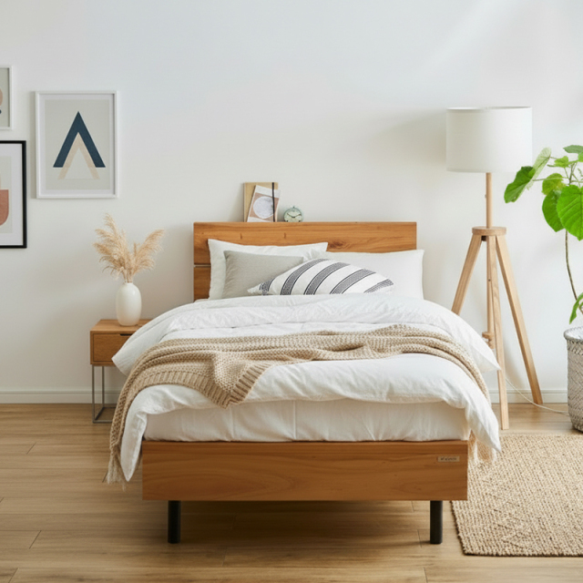 天然の無垢材を使用し素材感のある温かみを感じられるベッドフレーム。
