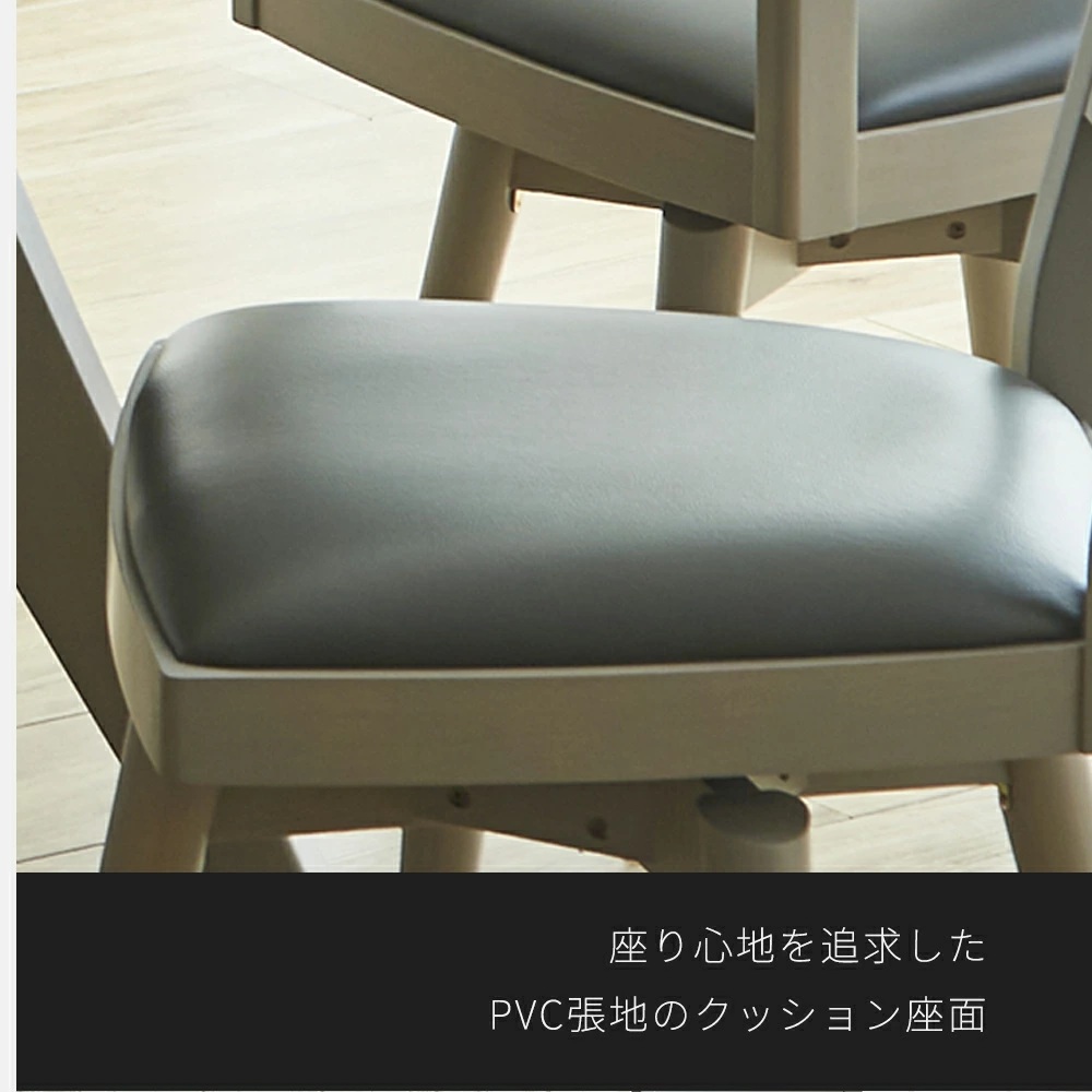 材質 | 張地:PVC(合成革皮) フレーム(木部):ラバーウッド 仕上げ:PU塗装 |