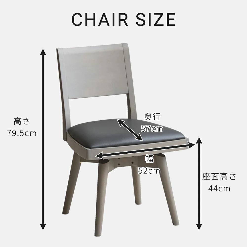 | サイズ | 外寸:幅520mm 奥行:570mm 高さ:795mm 座面高:440mm |