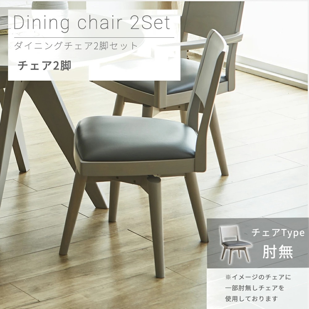Grace ダイニングチェア 回転チェア 2脚セット (肘無し)
