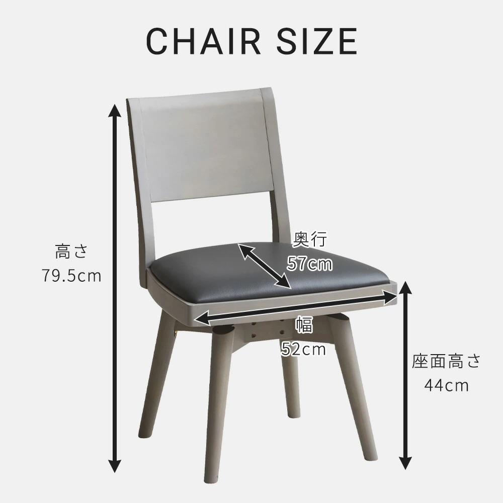 テーブル 天板:ラバーウッド 脚部:ラバーウッド 仕上げ:PU塗装 チェア 張地:PVC(合成革皮) フレーム(木部):ラバーウッド 仕上げ:PU塗装 |