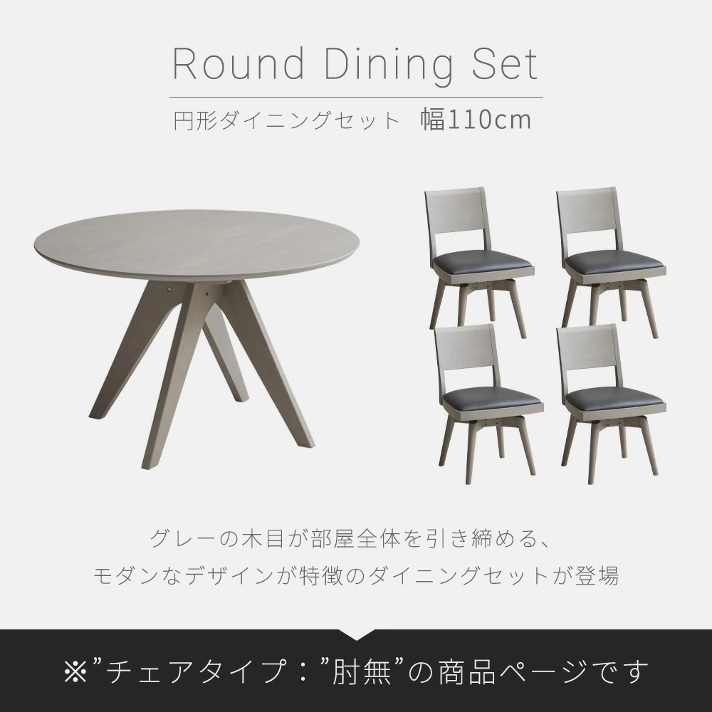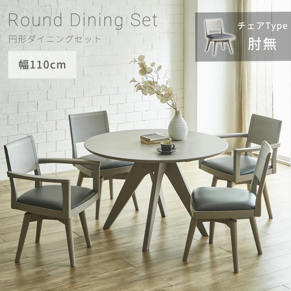 Grace ダイニングセット 110Φテーブル 5点セット (チェア:回転肘無し)