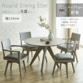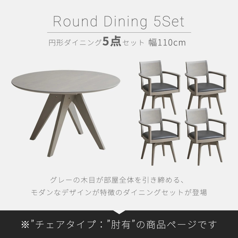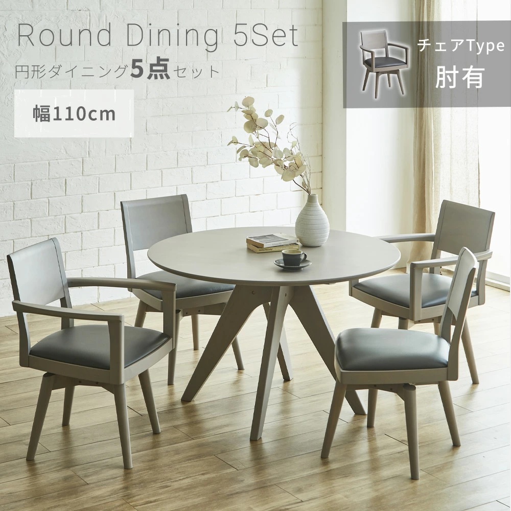 Grace ダイニングセット 110Φテーブル 5点セット (チェア:回転肘付き)