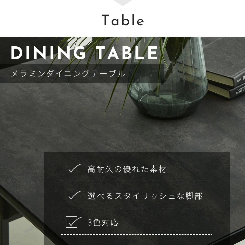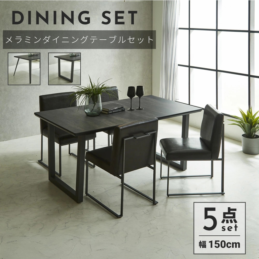 テーブル 天板:メラミン 脚部:スチール チェア 張地:PVCレザー(合成革皮) 脚部:スチール |