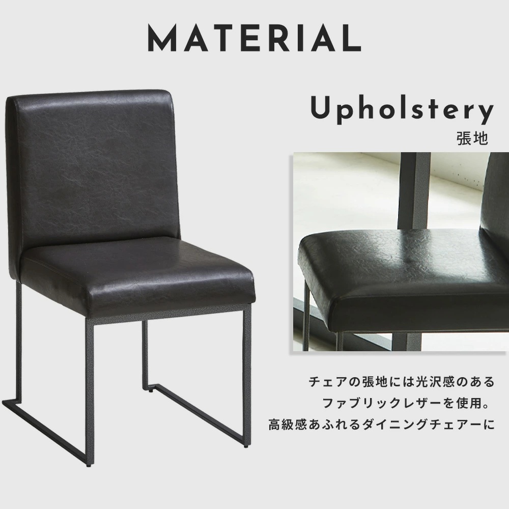 テーブル 天板:メラミン 脚部:スチール チェア 張地:PVCレザー(合成革皮) 脚部:スチール |