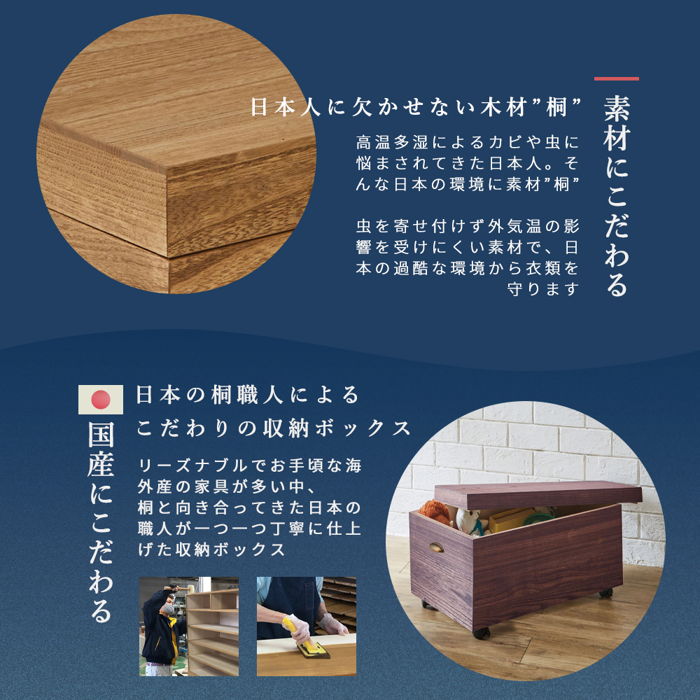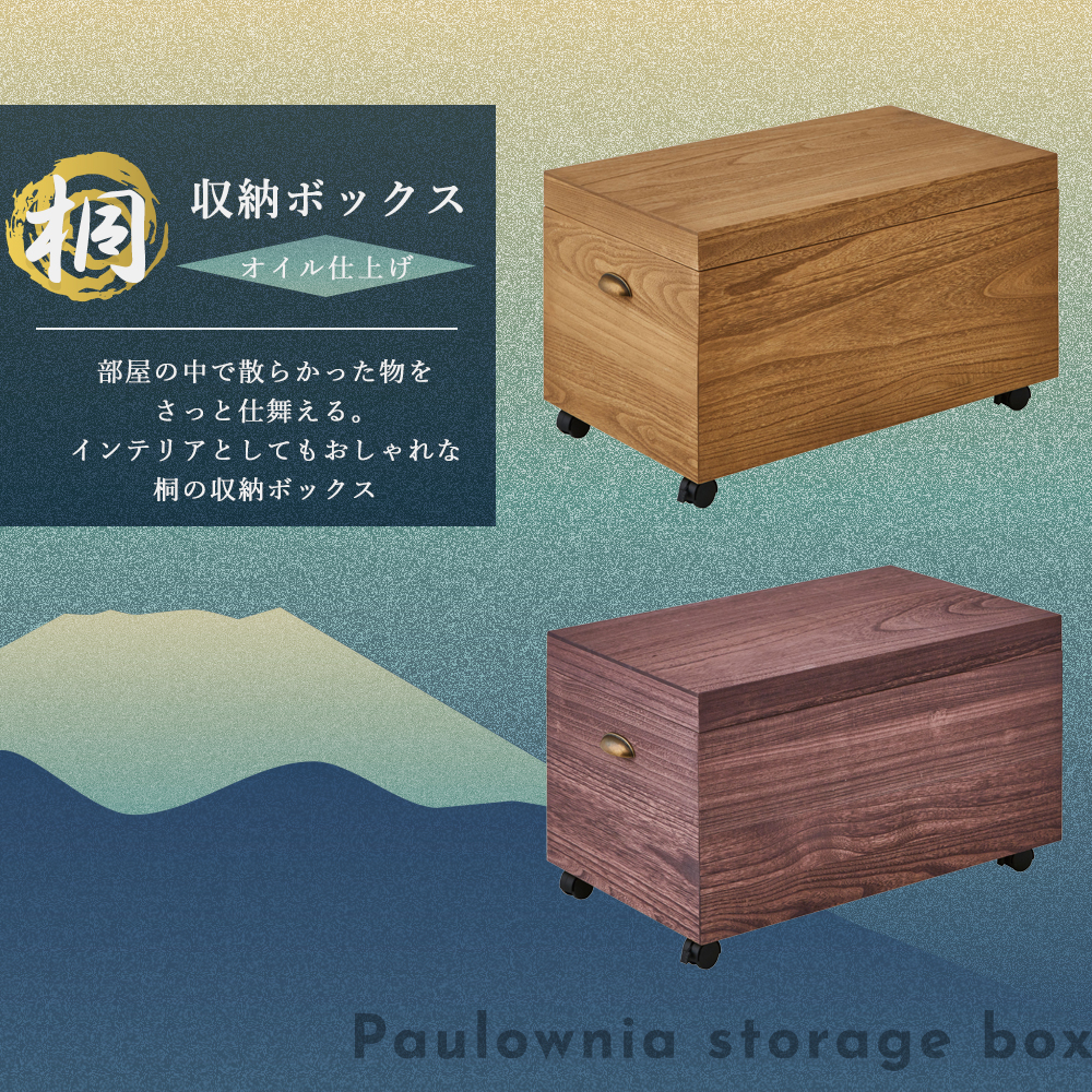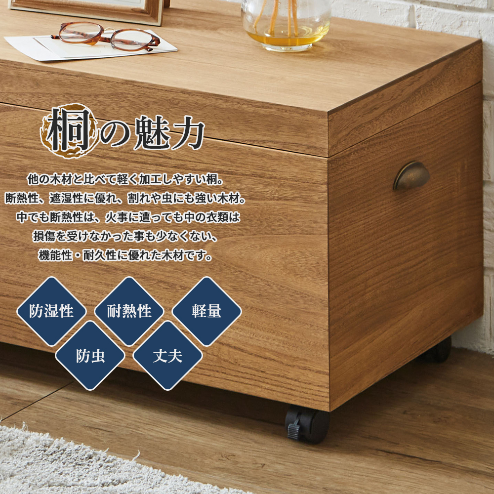 収納ボックス:桐材 キャスター:プラスチック製 取手部:めっき材 |