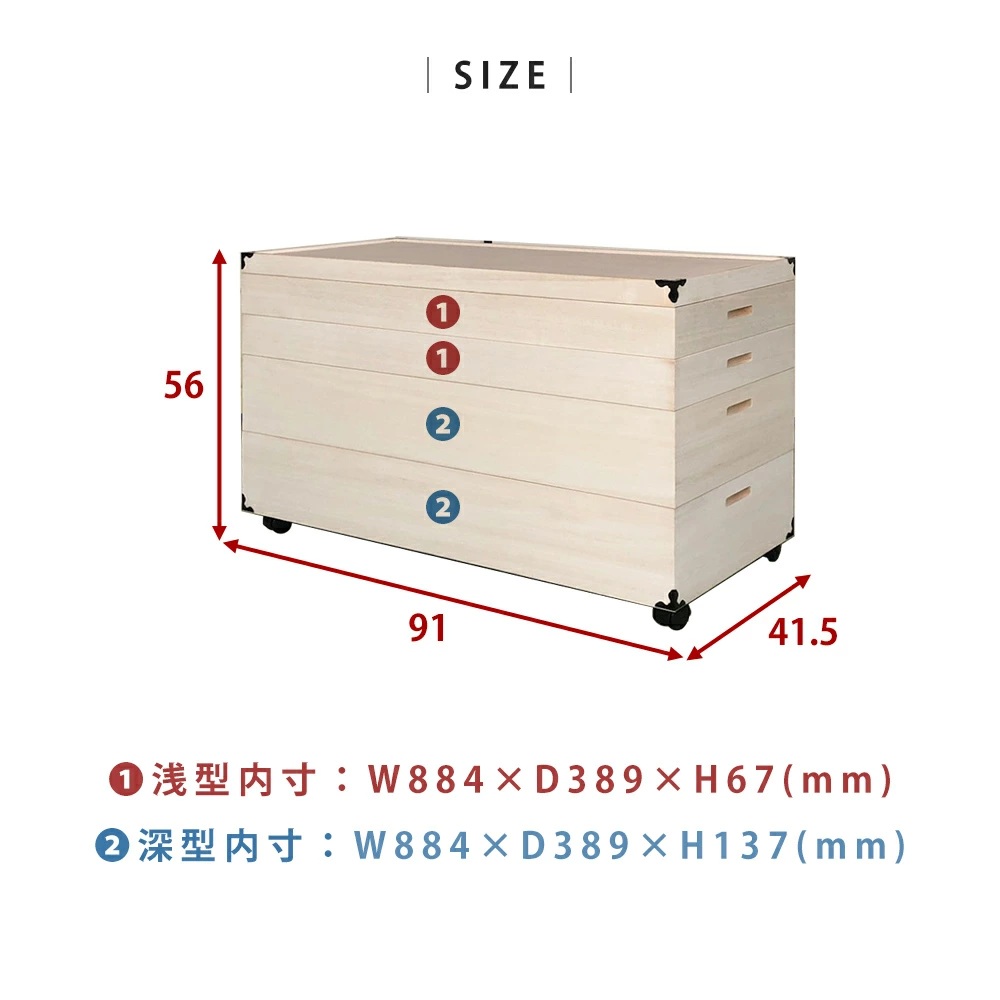 | サイズ | 本体:幅910mm 奥行:415m 高さ:560mm 浅箱内寸:幅884mm 奥行:389m 高さ:67mm 深箱内寸:幅884mm 奥行:389m 高さ:137mm |