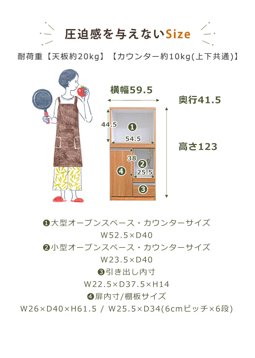 | サイズ | 幅595mm 奥行:415m 高さ:1230mm |