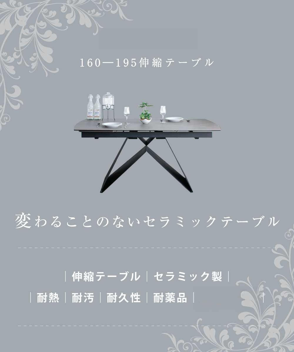 Grace ダイニングテーブル セラミック 160?195伸長テーブル