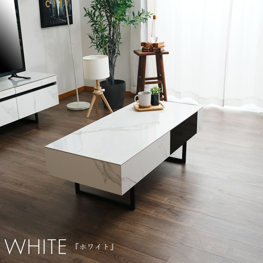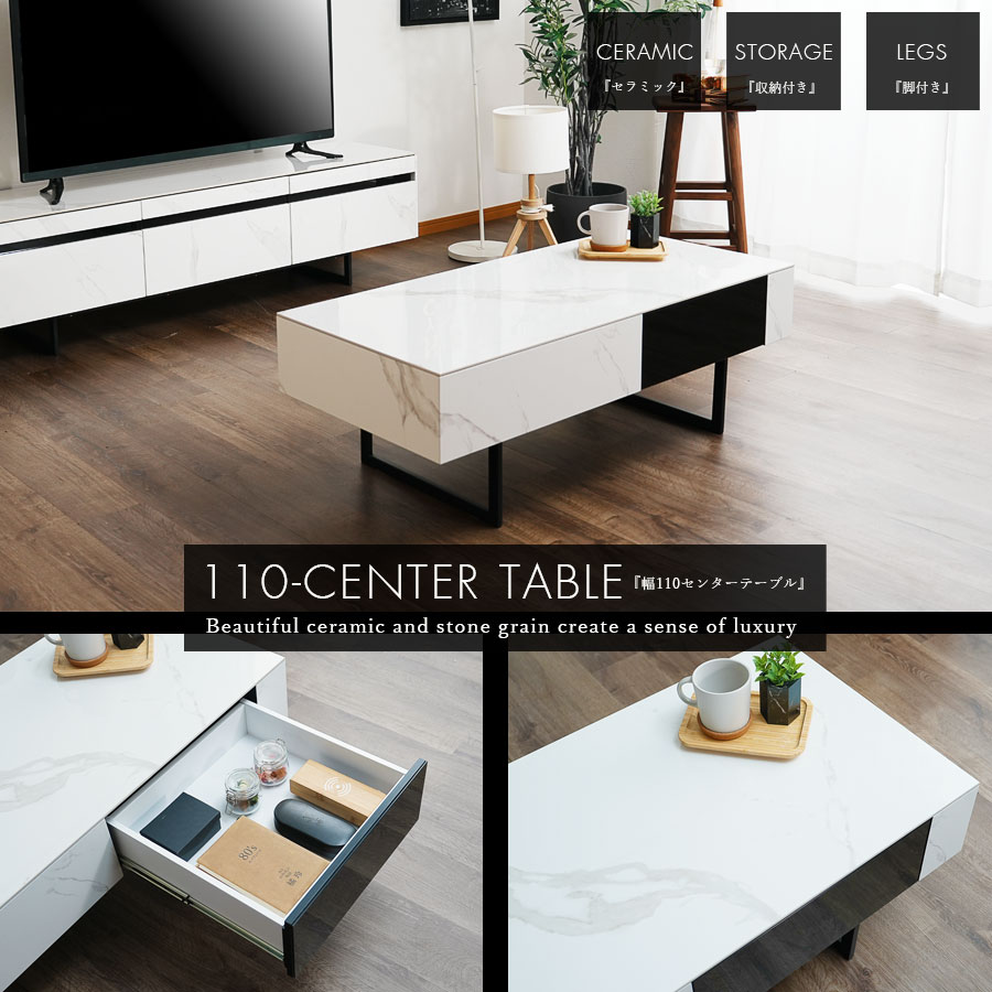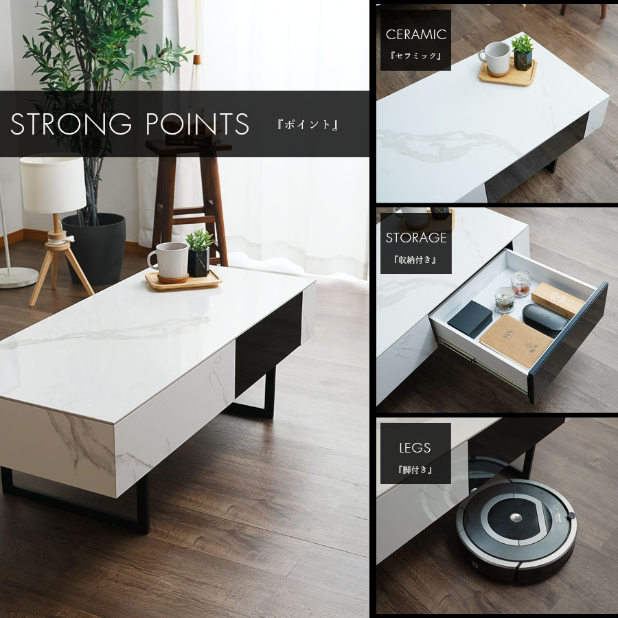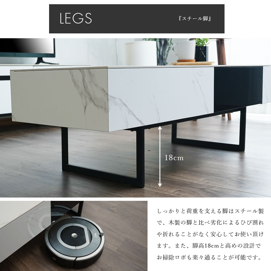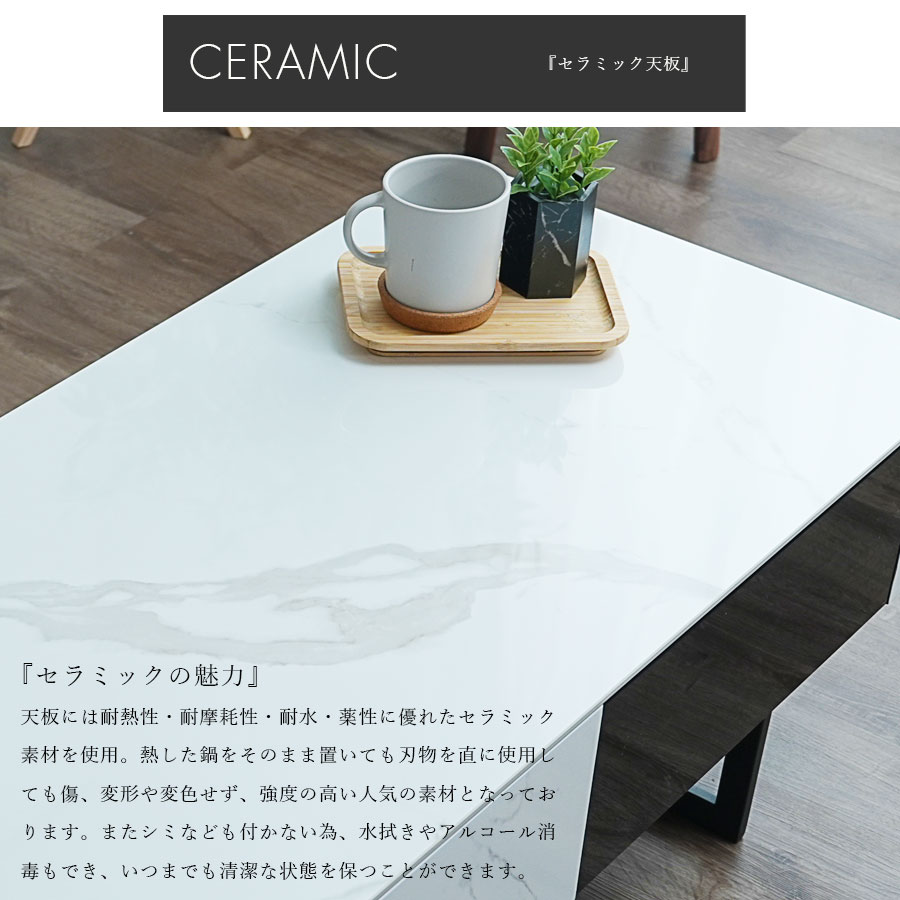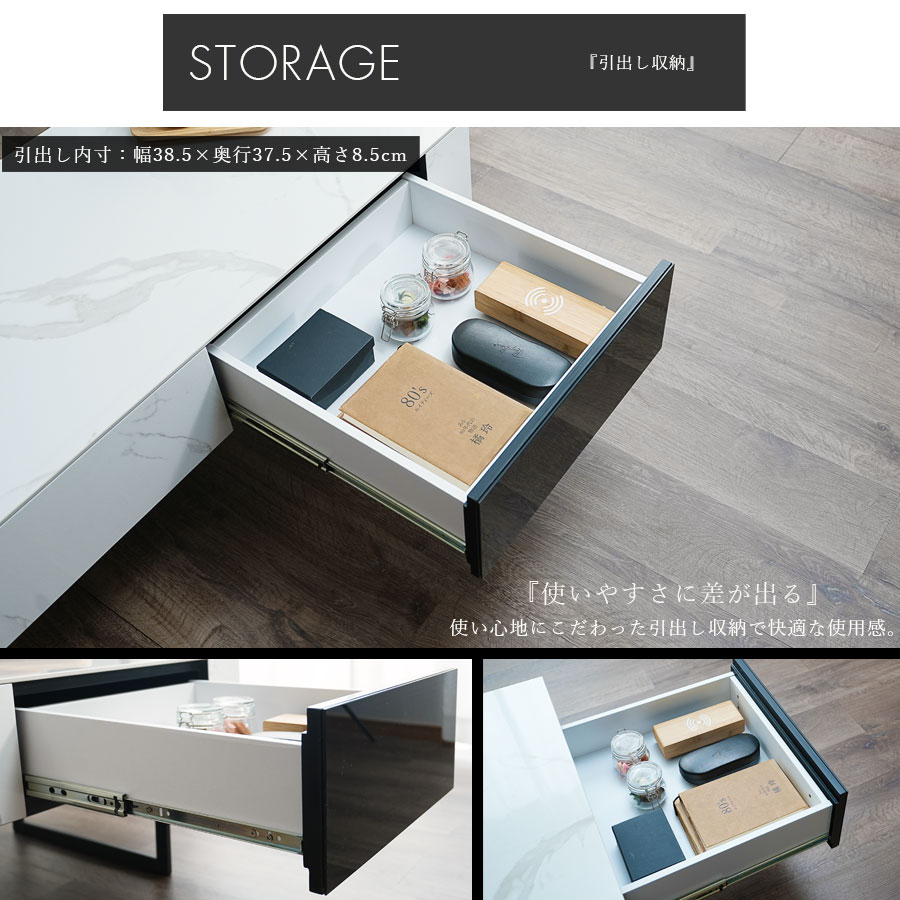 天板:セラミック材 側板・前板:鏡面化粧仕上げ 脚:スチール フルスライドレール |