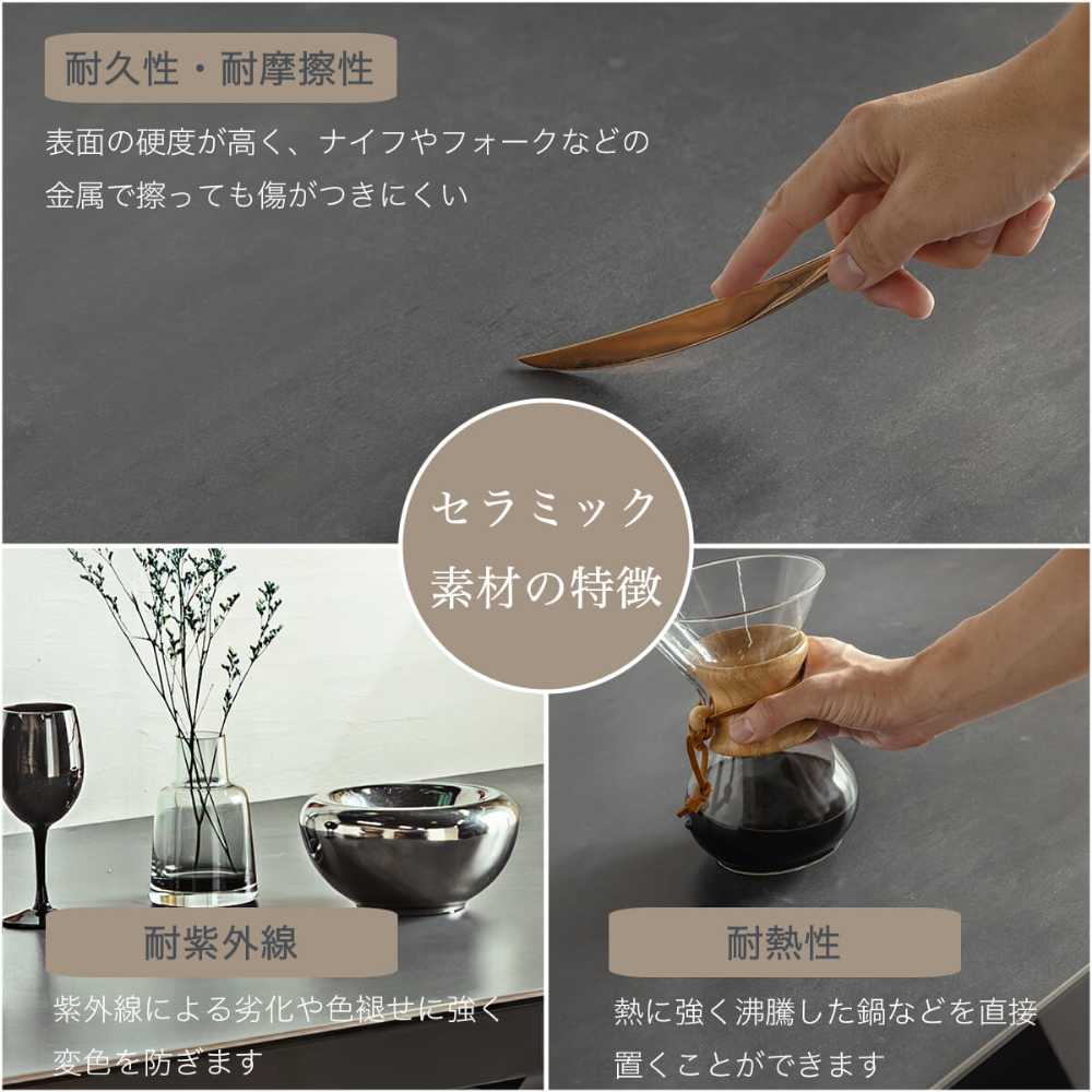 天板:ガラス/セラミック 脚:MDFウレタン塗装(半ツヤ) 仕様:伸長式 4?8人掛け対応 |