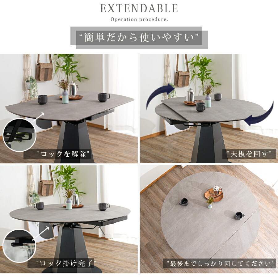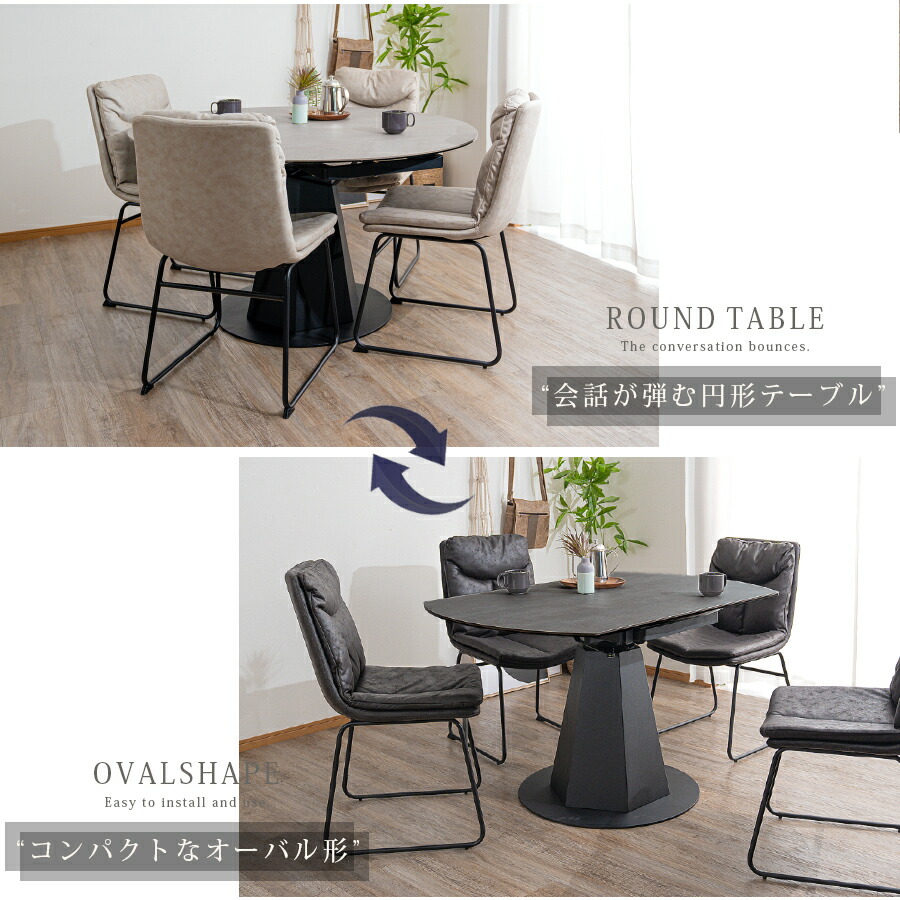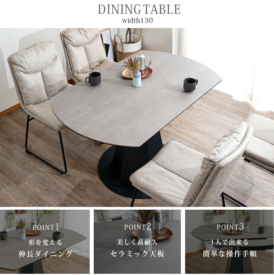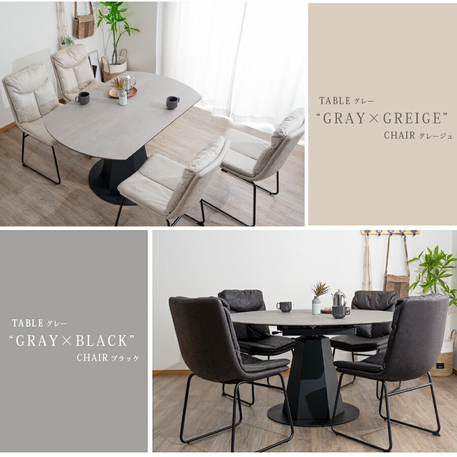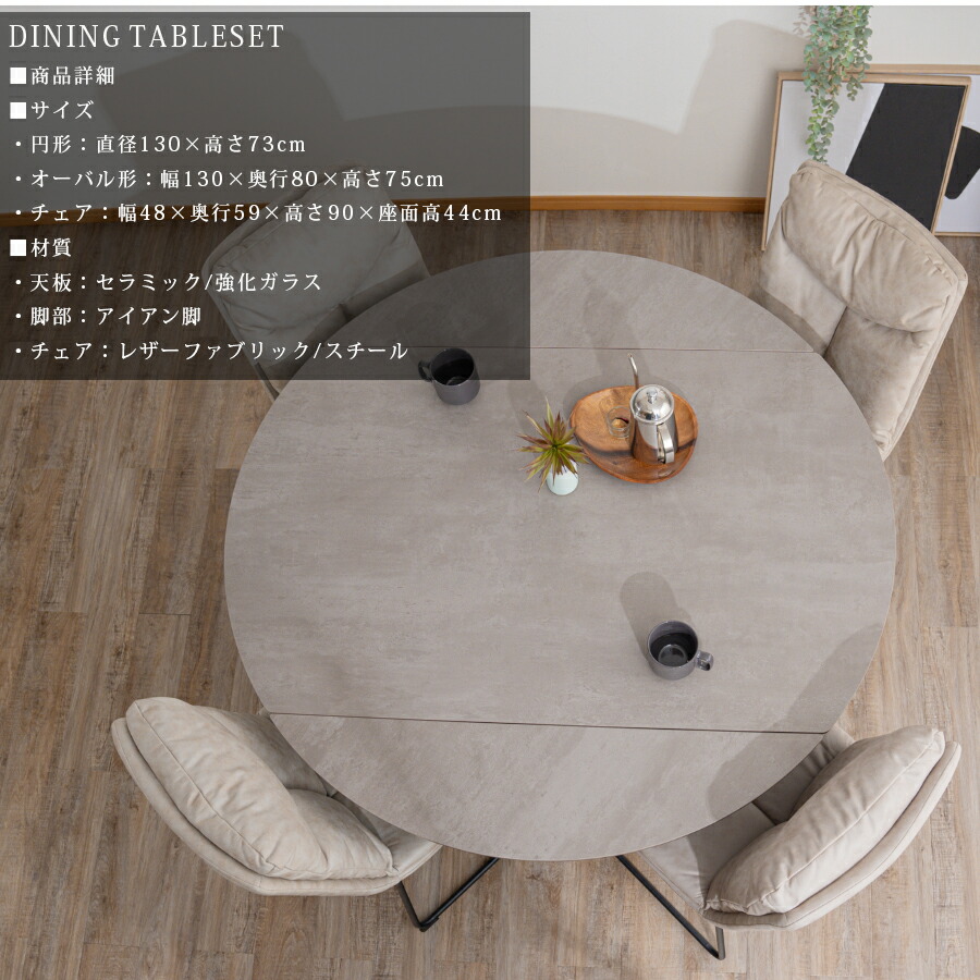 Grace ダイニング5点セット セラミック (Φ130変形テーブル + チェア4脚)