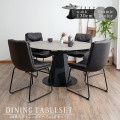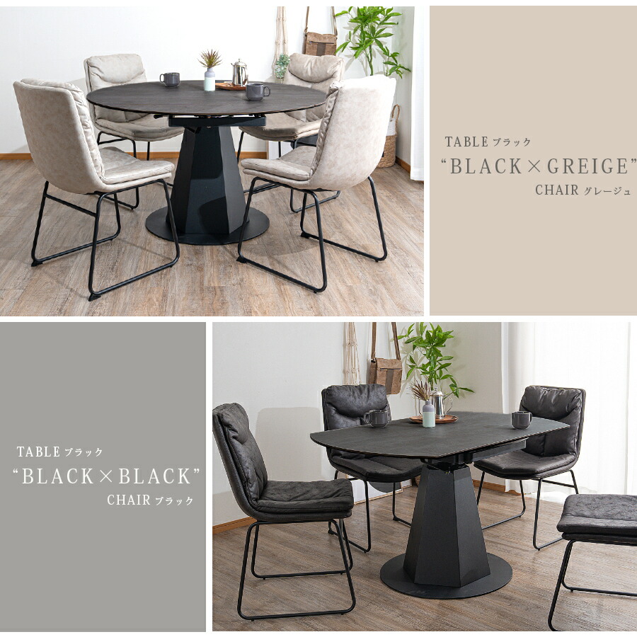 【テーブル】 材質: 天板セラミック + ガラス 脚:アイアン(ブラック) 【チェア】 スチール脚(つや消し黒塗装) 張地: レザーファブリック材 |