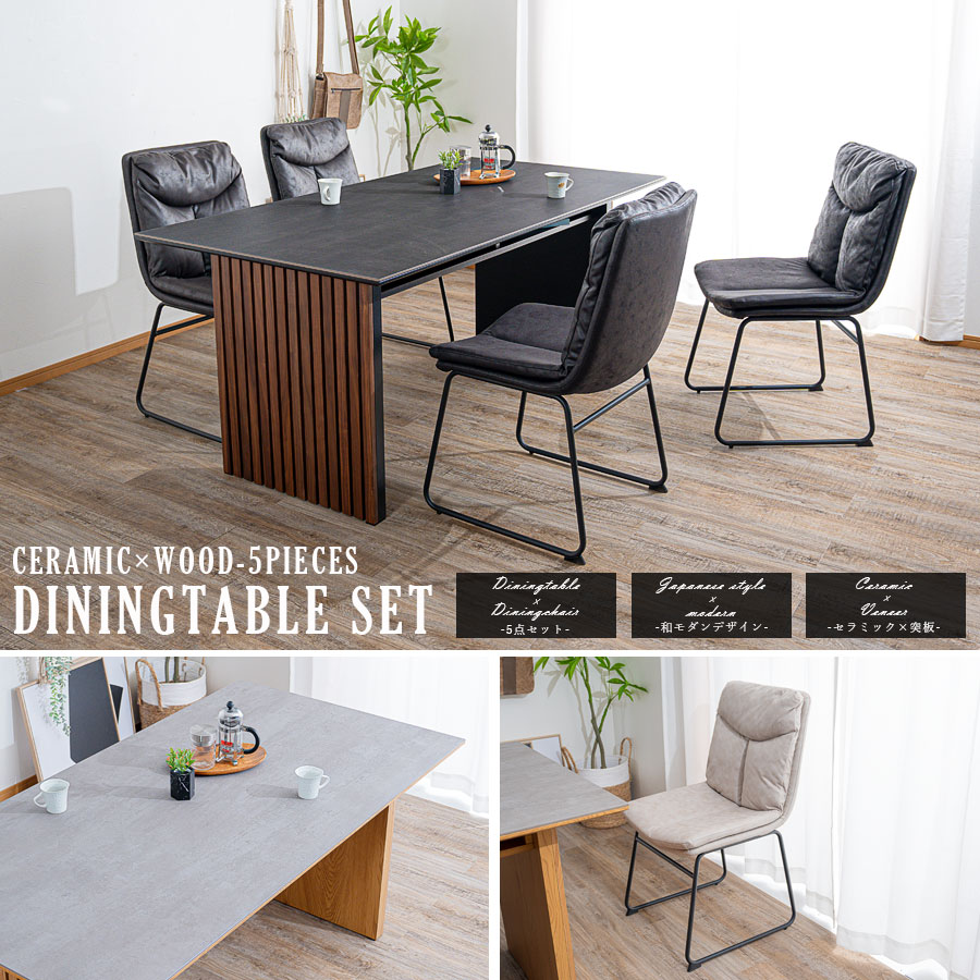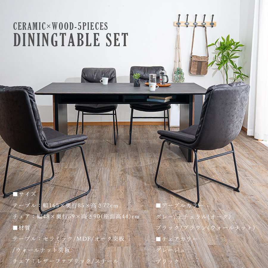 Grace ダイニング5点セット セラミック (165テーブル + チェア4脚)