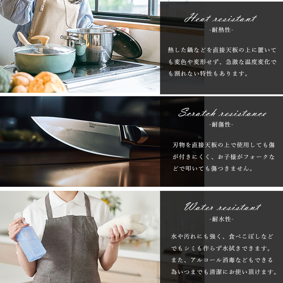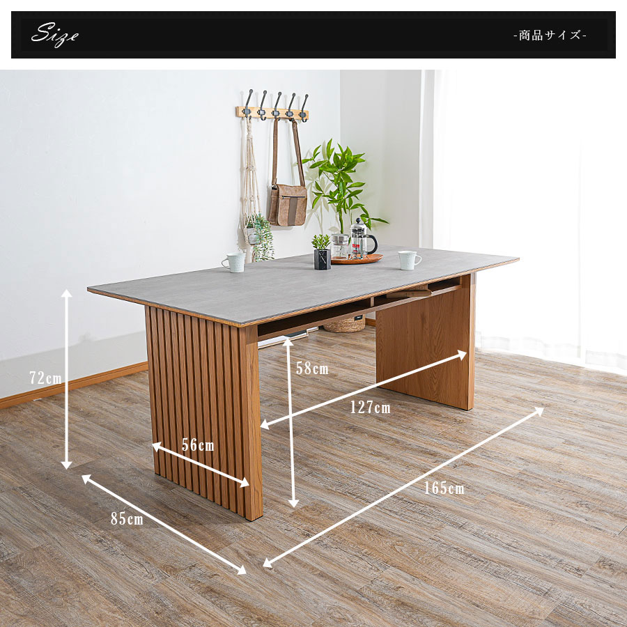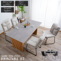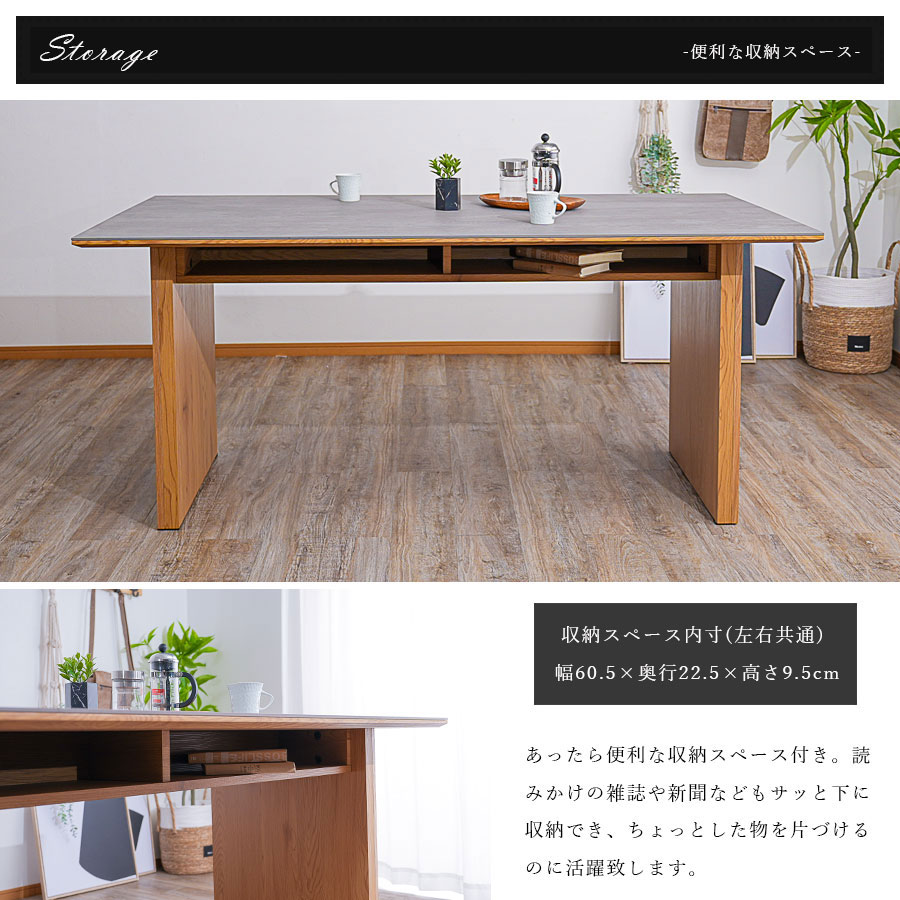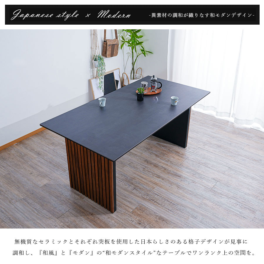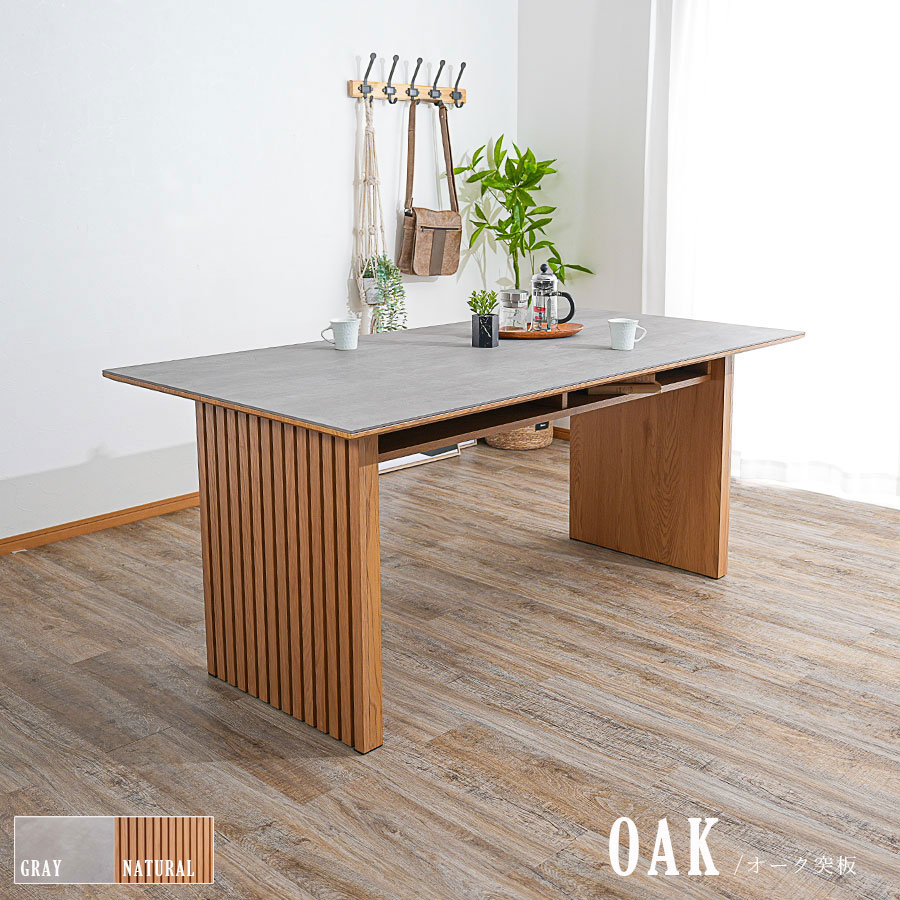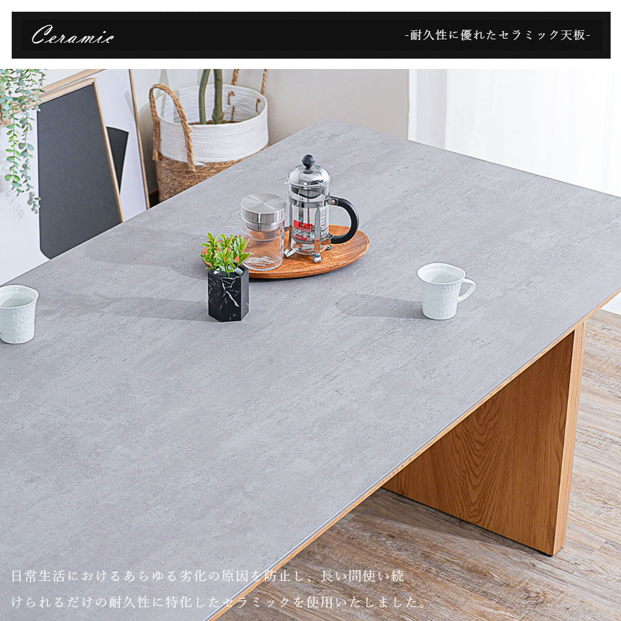 【テーブル】 天板:セラミック 脚:MDF/突板(ウォールナット、オーク) 【チェア】 座面:レザーファブリック 脚:スチール |
