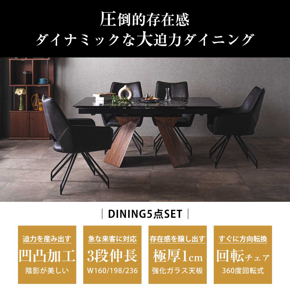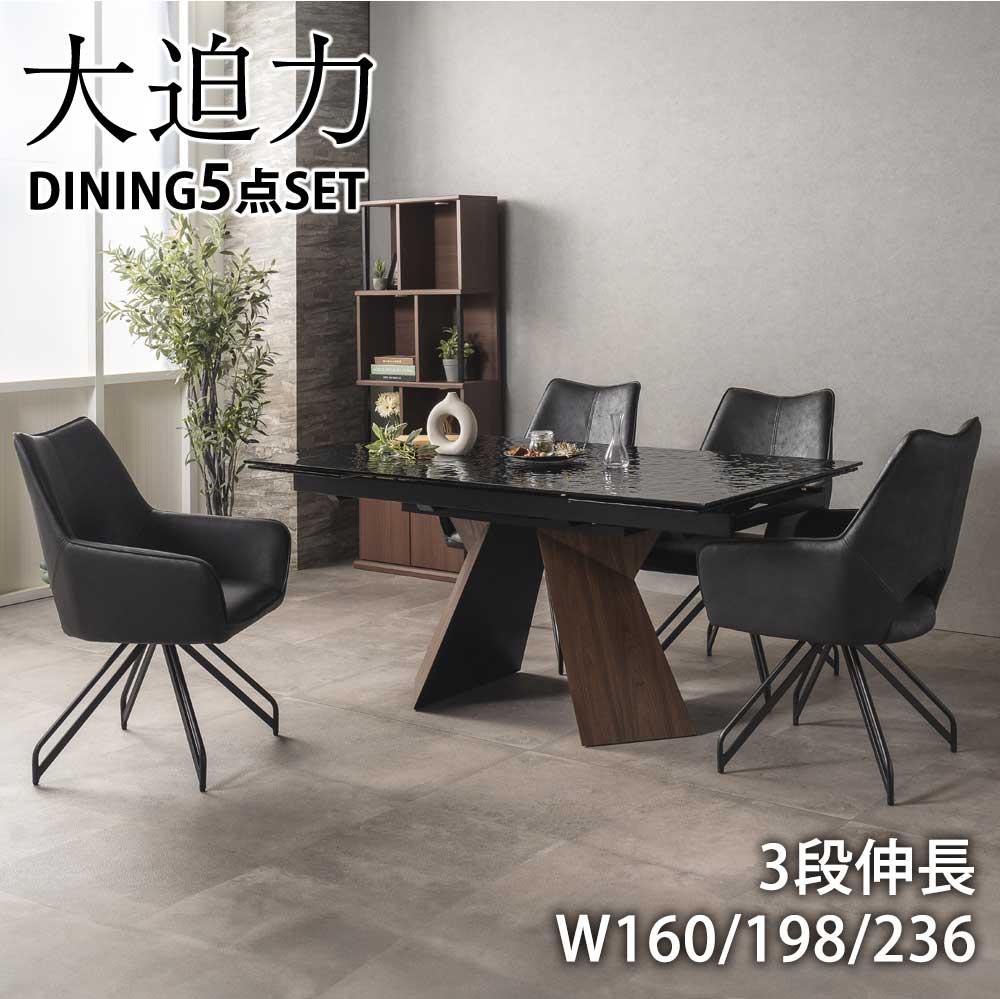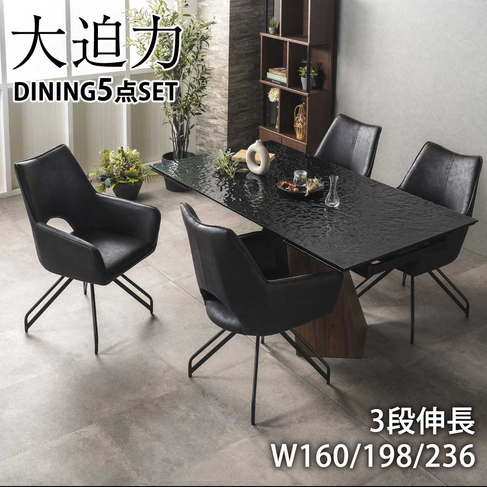 Grace ダイニングセット 強化ガラス 160~236伸長テーブル 5点セット