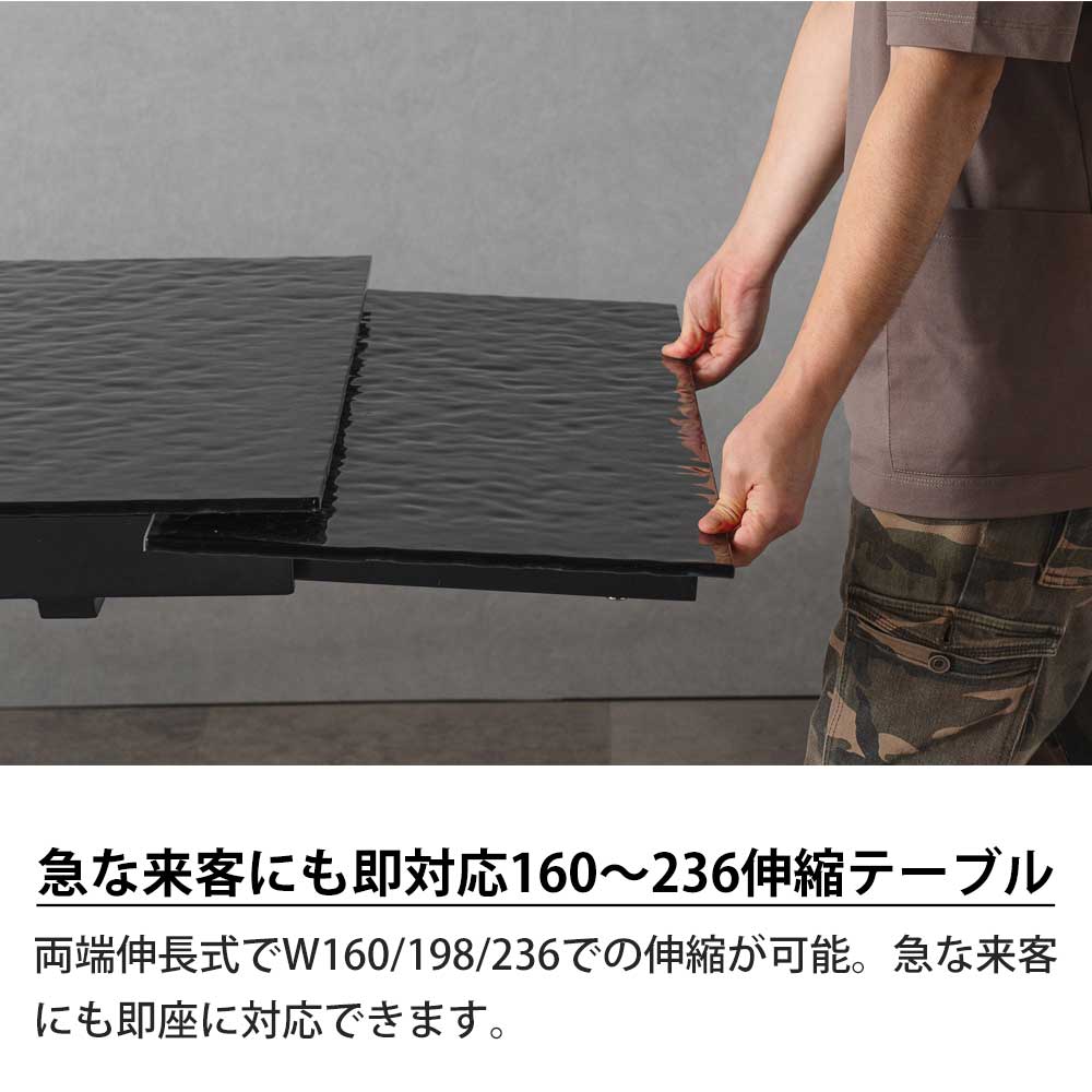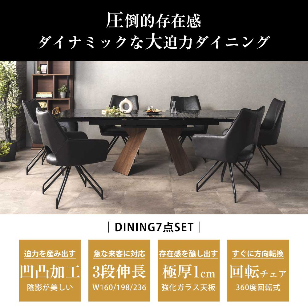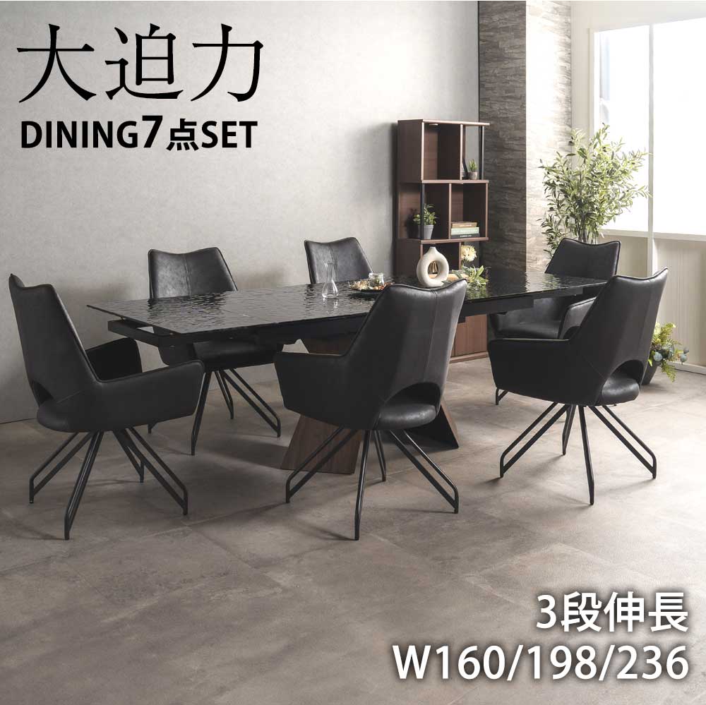 Grace ダイニングセット 強化ガラス 160~236伸長テーブル 7点セット