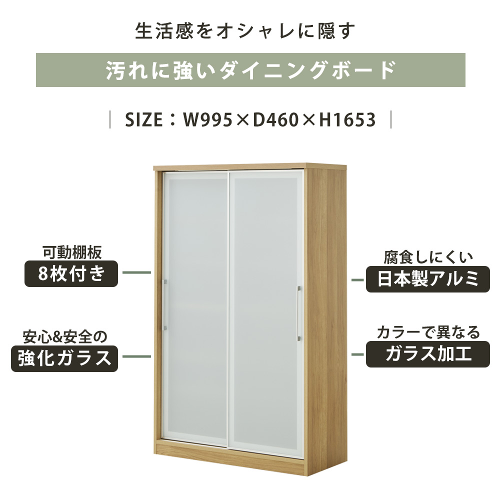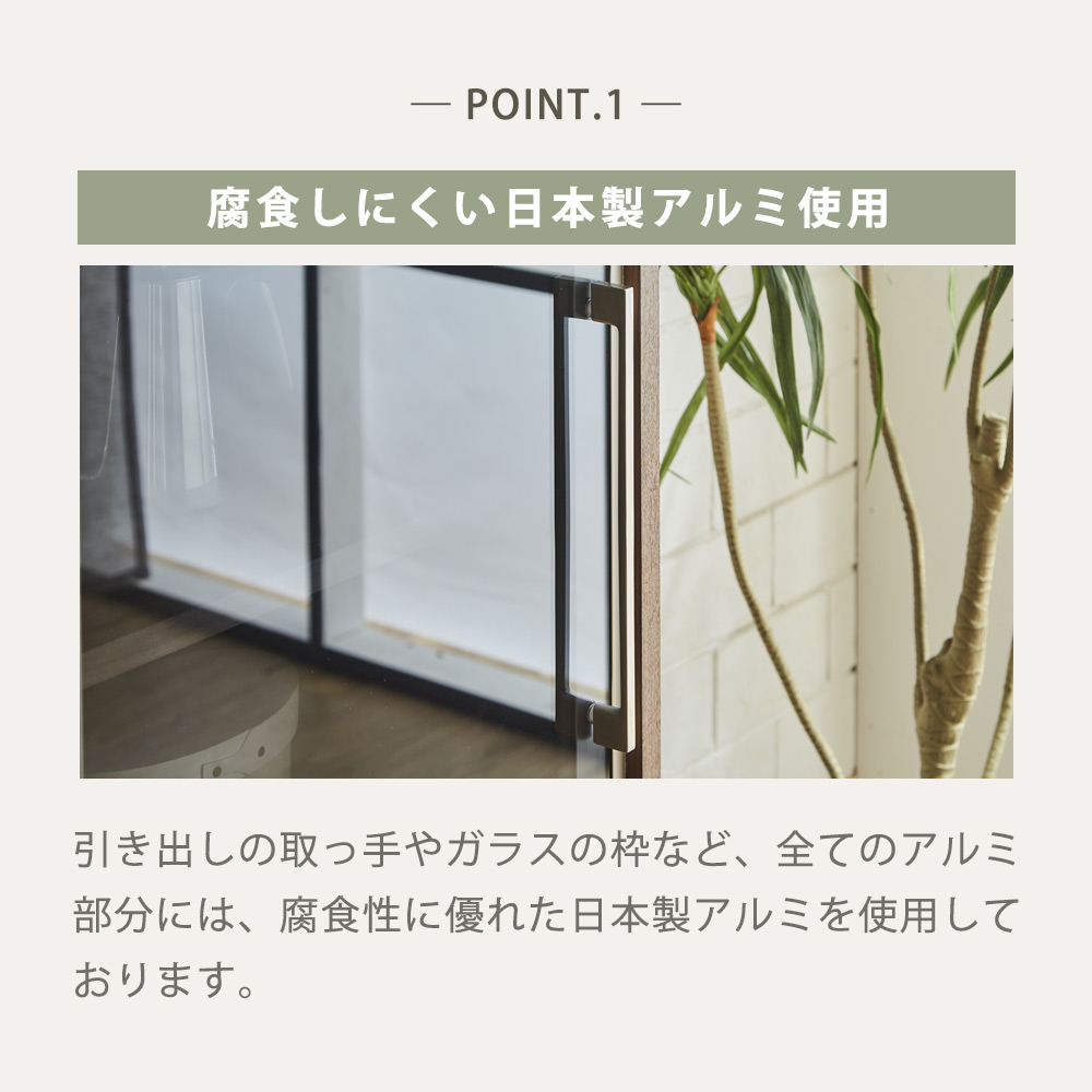 【70レンジボード】 主材:MDF 本体表面:強化紙(EBコート紙) 取手:国産アルミ オープン部上部:モイス仕様 【100ダイニングボード】 主材:MDF 本体表面:強化紙(EBコート紙) 取手:国産アルミ ガラス板:4mm厚 |