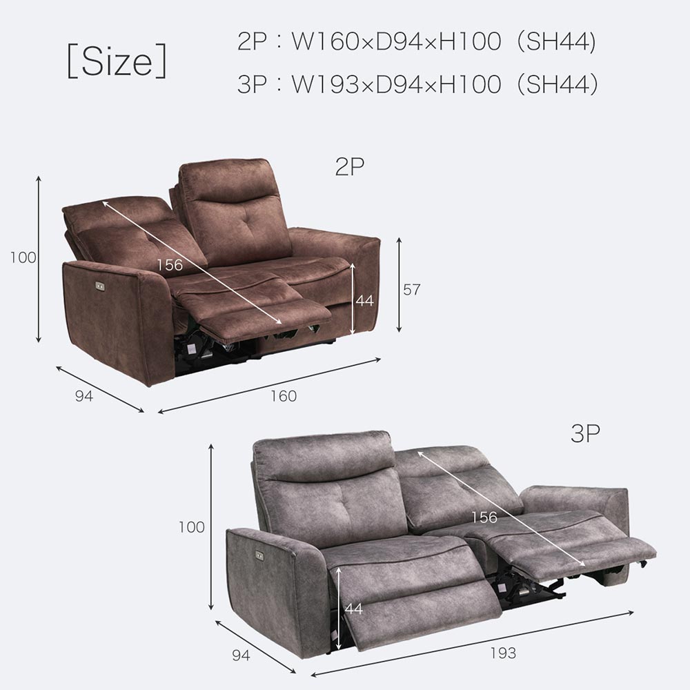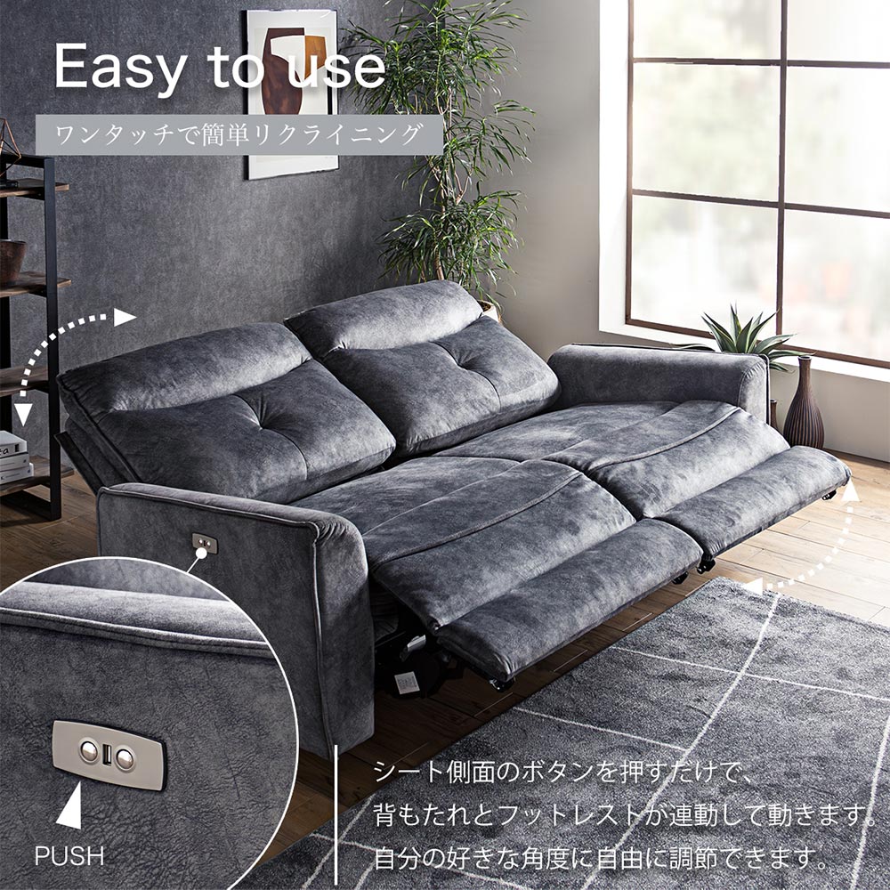Grace ソファ 電動リクライニング (選べる:2Pソファ / 3Pソファ)
