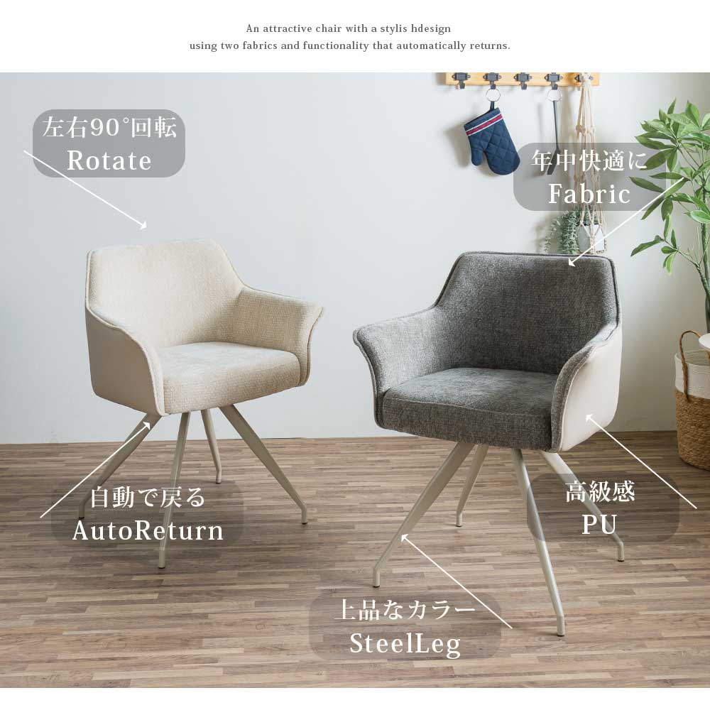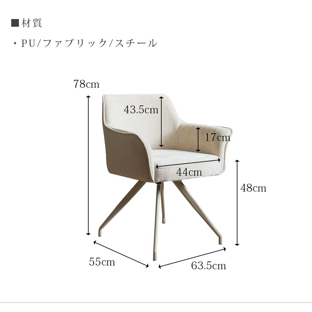 【回転チェア】 張地:ファブリック・PU 脚部:スチール |