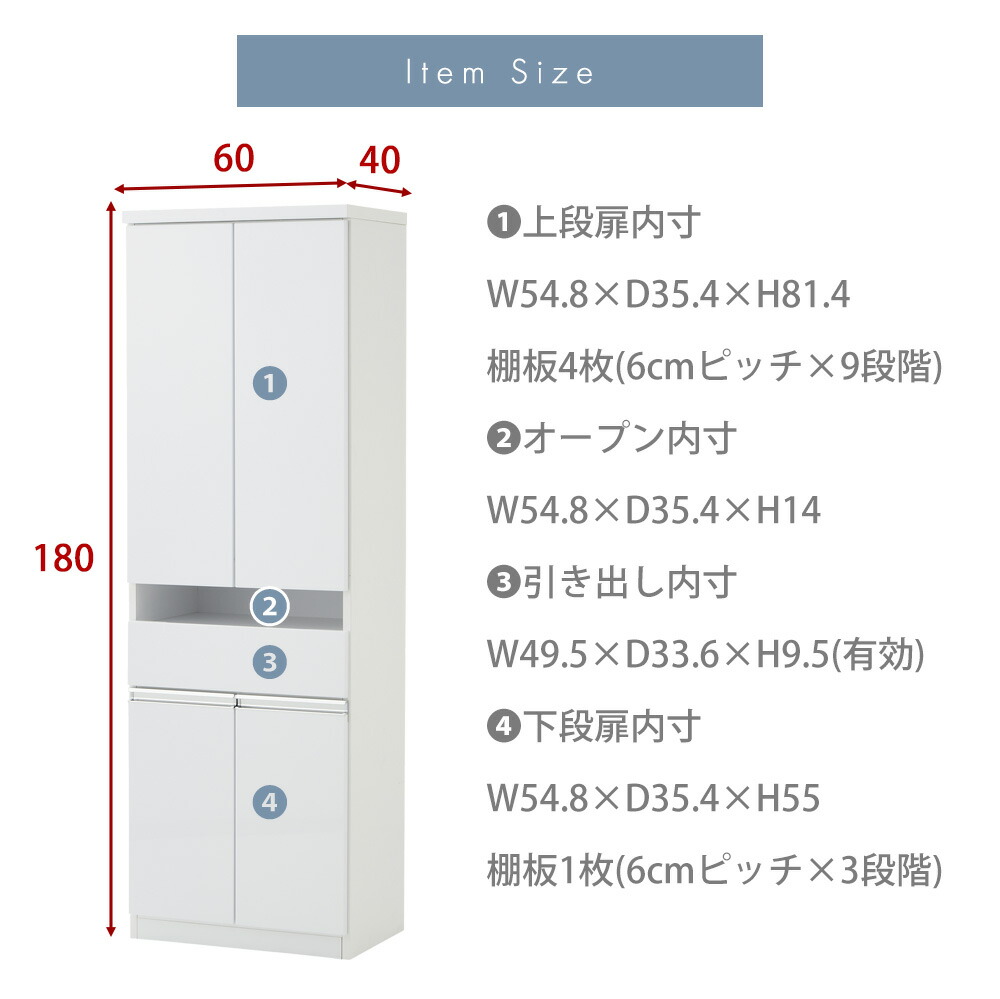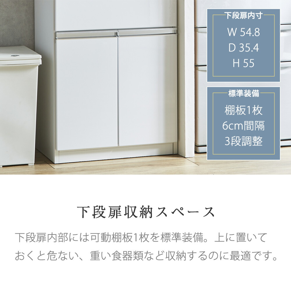 前板:ハイグロスシート(保護フィルム付き) 取手:アルミハンドル 背面化粧:あり |