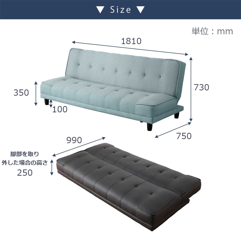 幅 1810mm x 奥行 750mm x 高さ 730mm(座面高さ350mm) |
