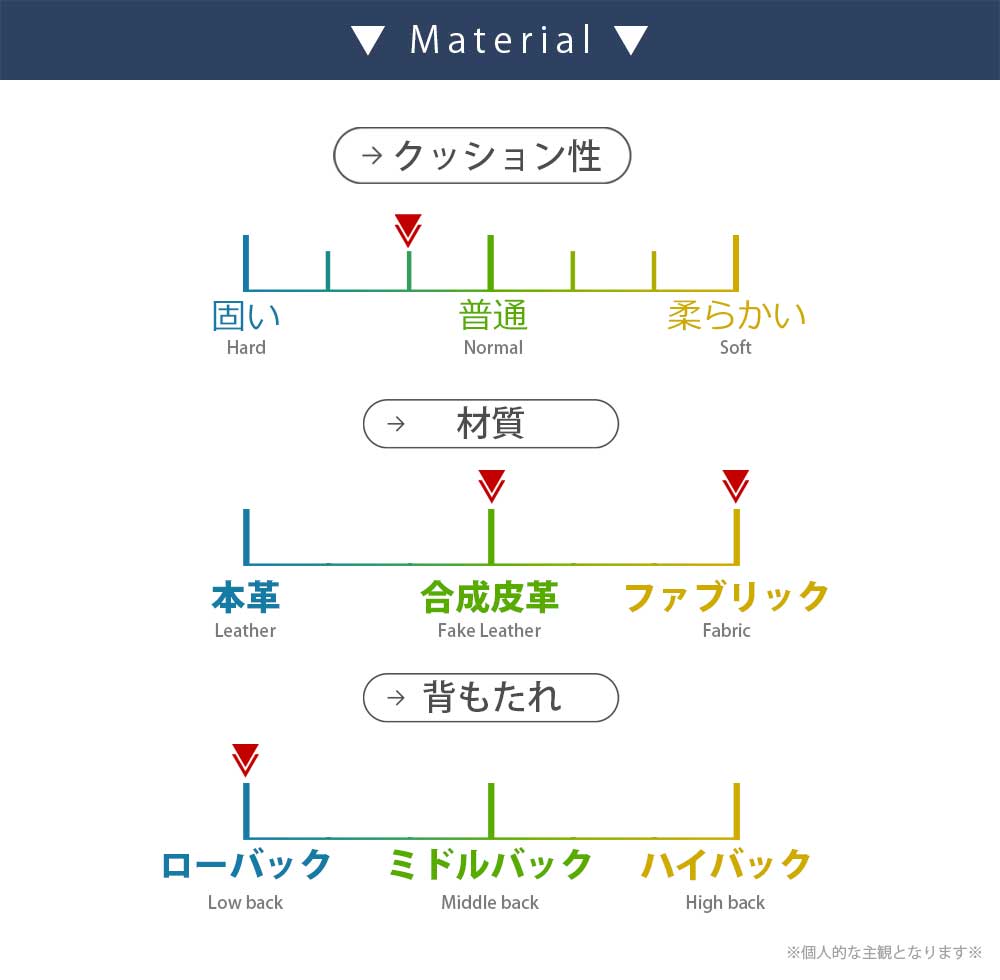生地: PVC / ファブリック 座面:Sバネ/ウレタンフォーム/ウェービングベルト ダブルステッチ 3段階リクライニング |