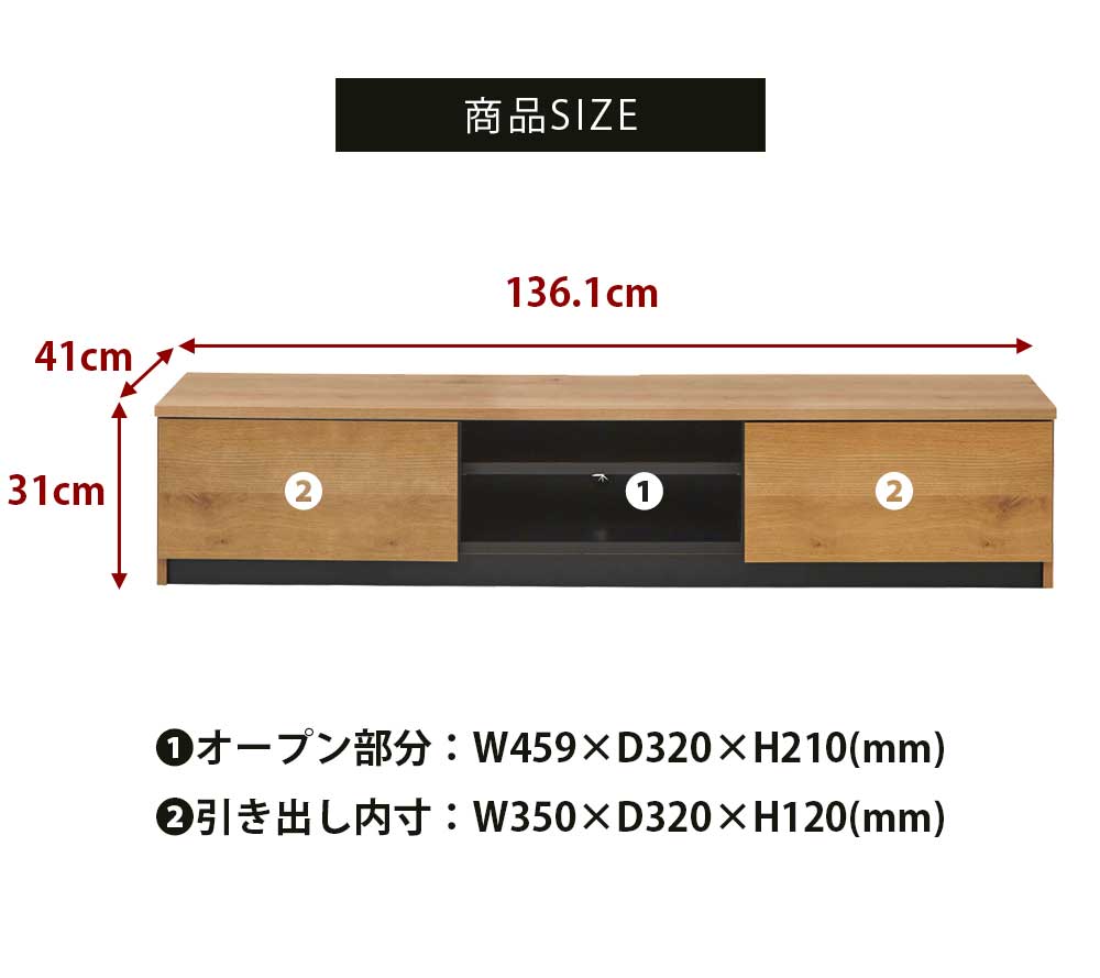 幅 1360mm x 奥行 410mm x 高さ 310mm |