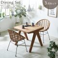 | 【テーブル】リサイクルパイン/水性塗装 【チェア】座面部:PEラタン 脚部:スチール/液体塗装 |