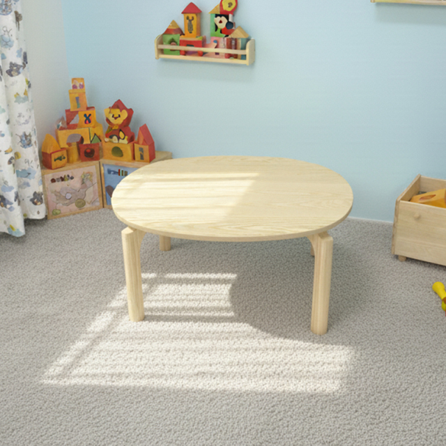 天然木・無垢材の天板- 厚み20mmのしっかりした天板で、お子様が安心して使えるテーブルです。軽量ながら 安定感があり、お絵描きやおやつに最適です。