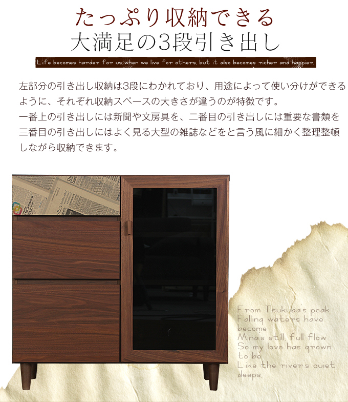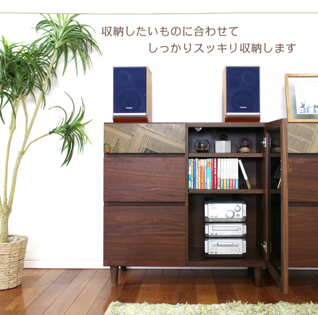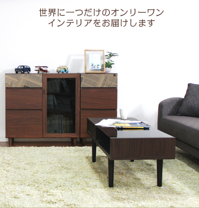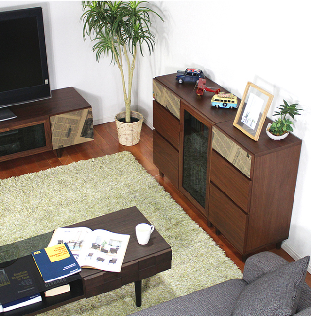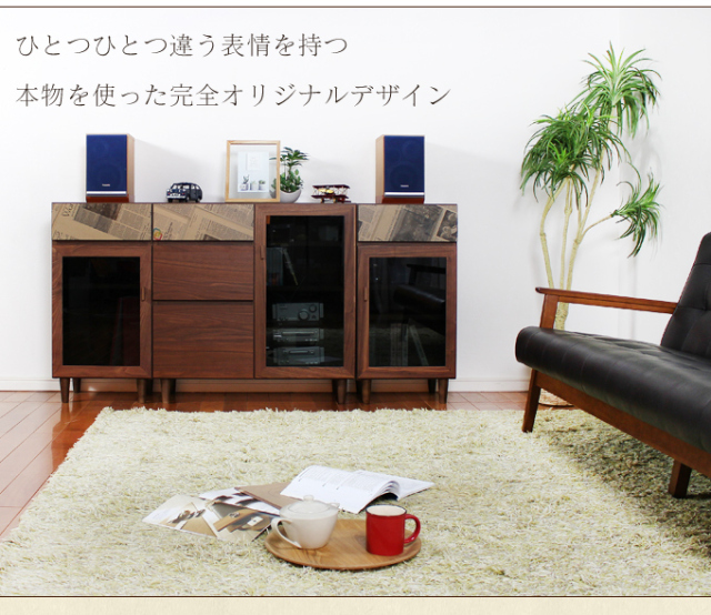 天板:ウォールナット突板 側面プリント 戸枠ウォールナット無垢材 |